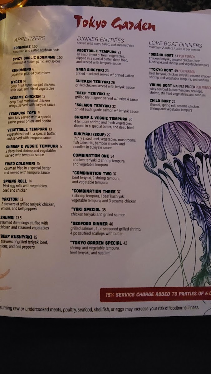 With an inviting atmosphere adorned with koi fish and tranquil gardens, dining here feels special. Patrons rave about the warm service and attention to dietary needs, making every visit memorable. Whether you’re celebrating with friends during a lively evening or enjoying a quiet meal, Tokyo Garden truly excels in delivering high-quality dishes and exceptional service. Don't miss out on their fresh sashimi and fun teppanyaki experiences—your taste buds will thank you!